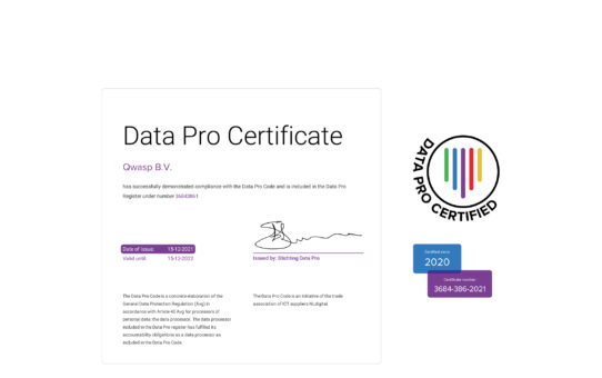 Data Pro Certificate Qwasp BV is geslaagd voor het Data...